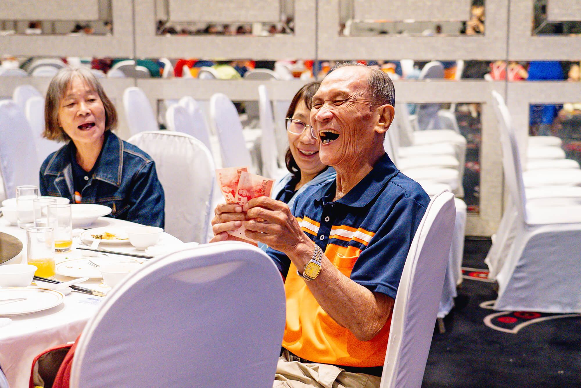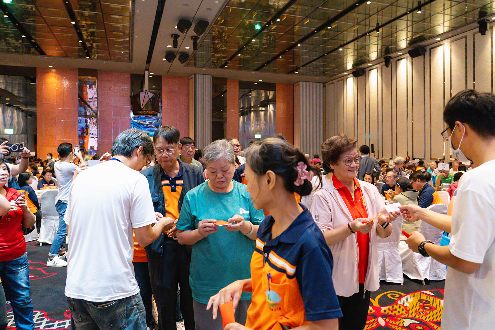 首先登場的是樂透遊戲,每個人都盯著手上的號碼卡,最後一個號碼公布後,現場歡聲雷動,幸運得主馬上舉卡、揮手、開心地展示樂透卡,氣氛瞬間熱鬧到不行。